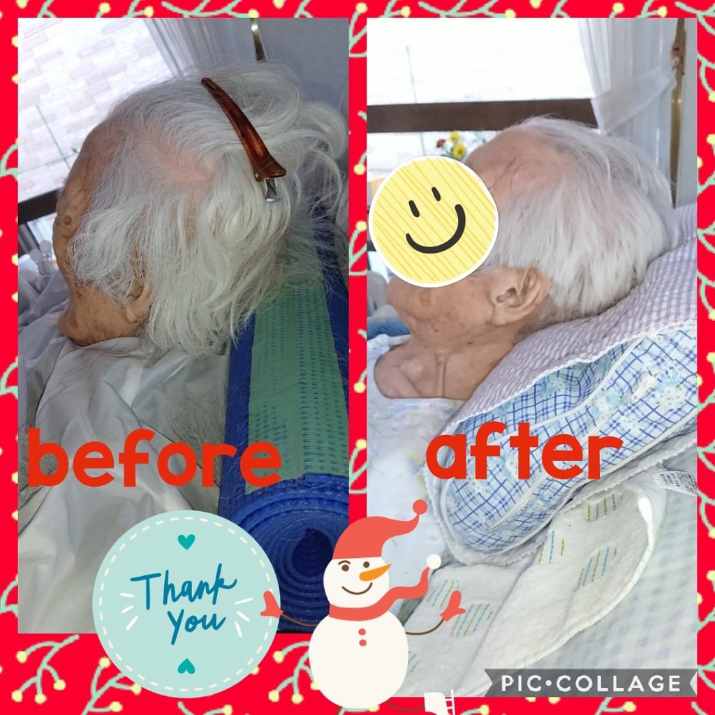 ベッド上での在宅訪問カット